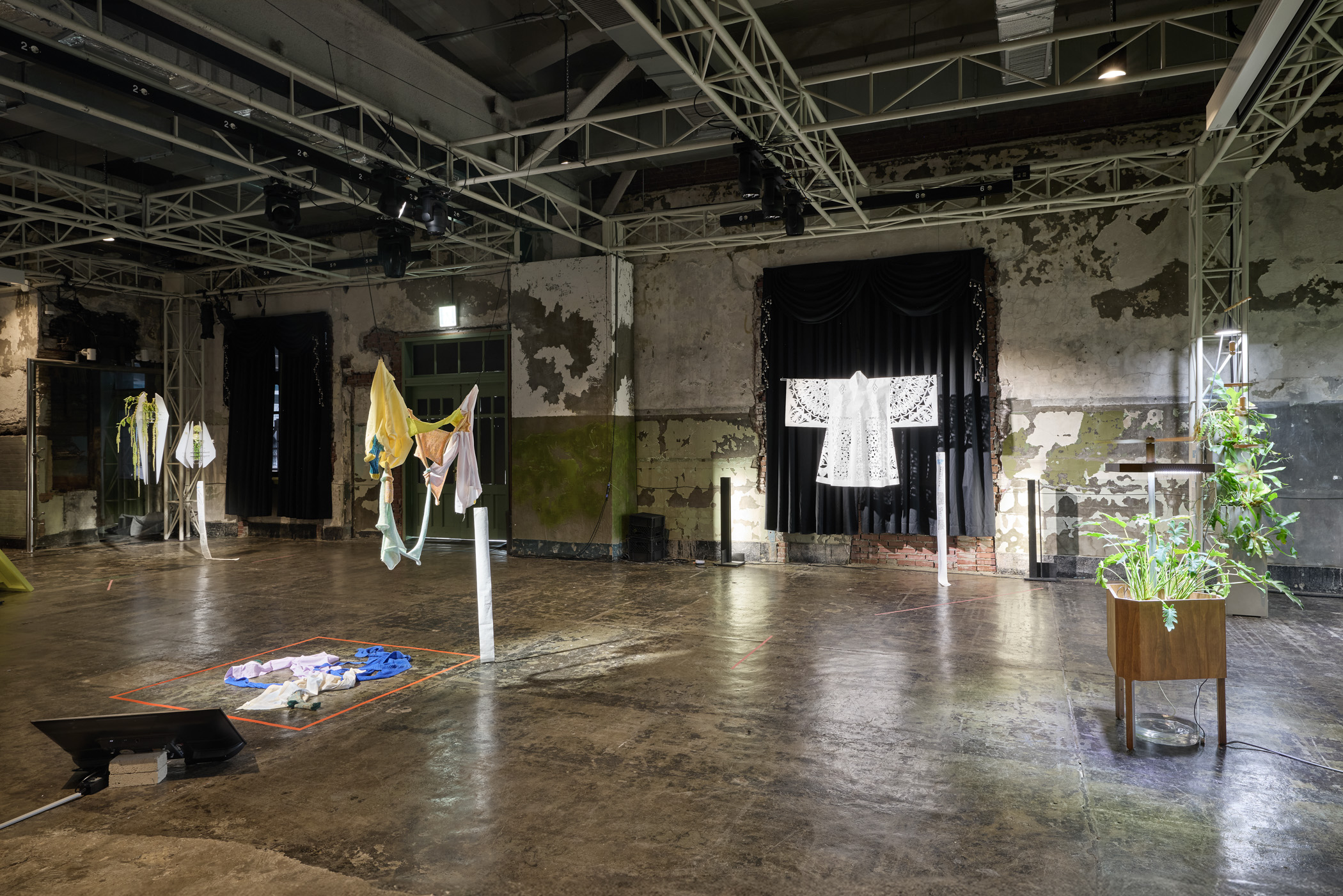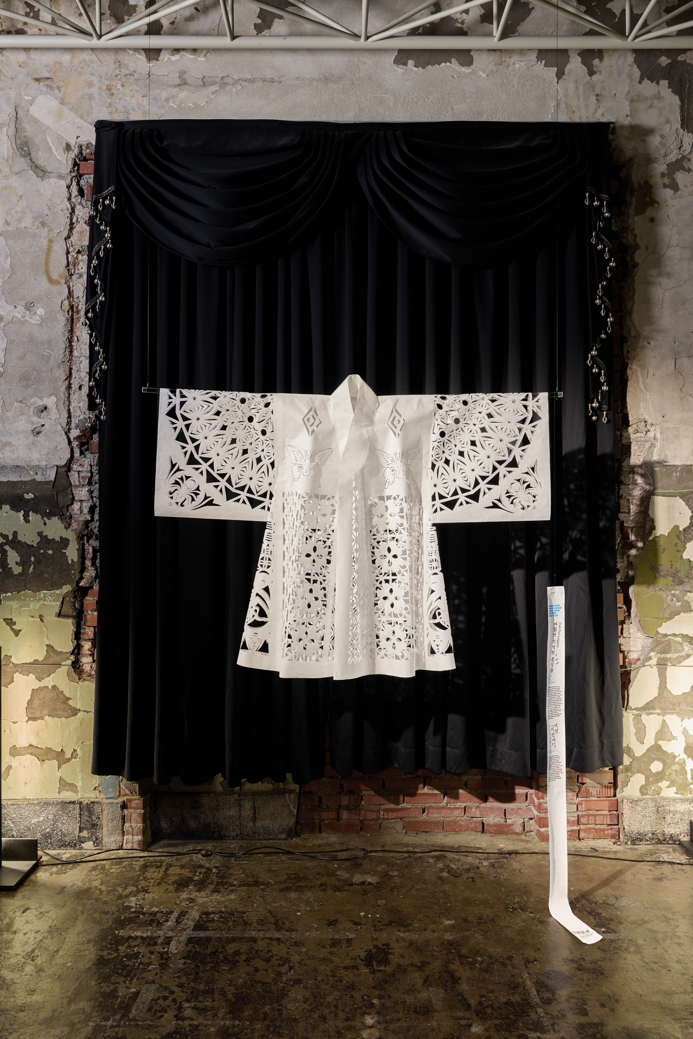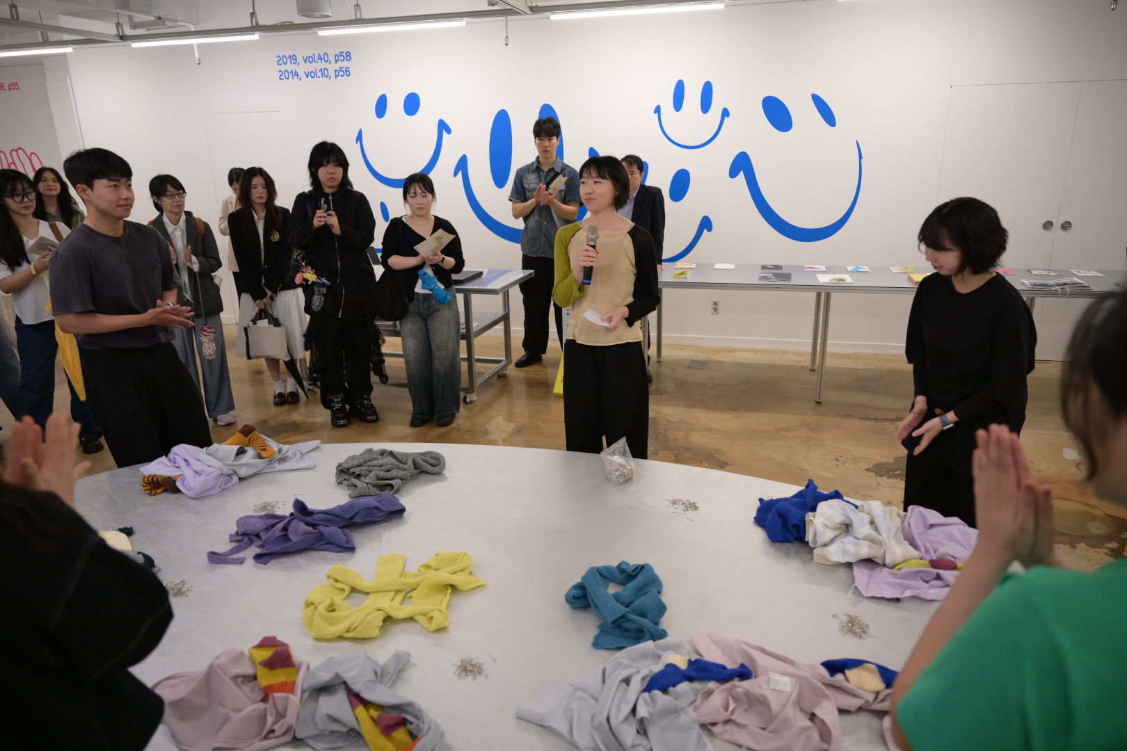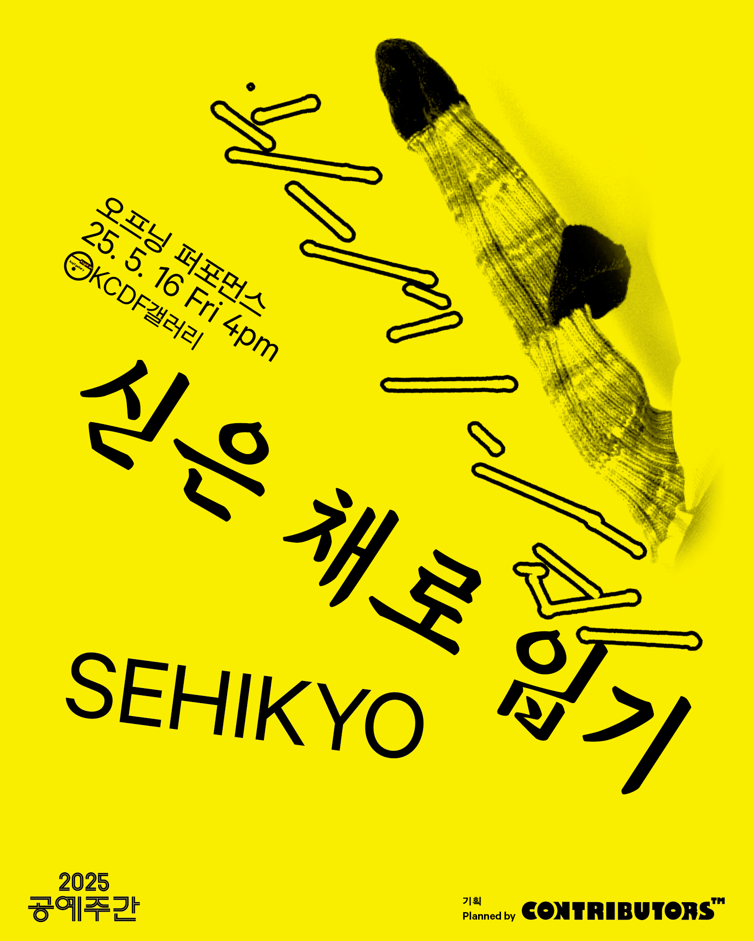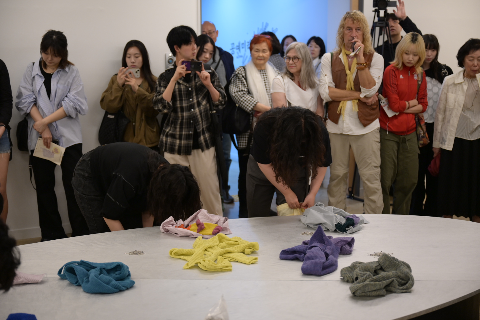 SEHIKYO의 워크숍 퍼포먼스는 ’양말‘을 신은 채 옷을 입는 행위에서 출발합니다’양말을 신는 행위‘와 ’옷을 입는 행위‘가 충돌할 때 발생하는 물리적 긴장 속에서 ’자르거나 봉합하는‘ 방식 대신에 주어진 재료와 제약 안에서 입을 수 있는 조건을 스스로 구성하며 이 과정에서 발생하는 몸의 반응, 불편함, 제스처, 그리고 창작 행위 자체가 하나의 퍼포먼스로 작용한다. 퍼포먼스 종료 후 완성된 옷은 《미래공예》 전시 스태프가 착용한다.