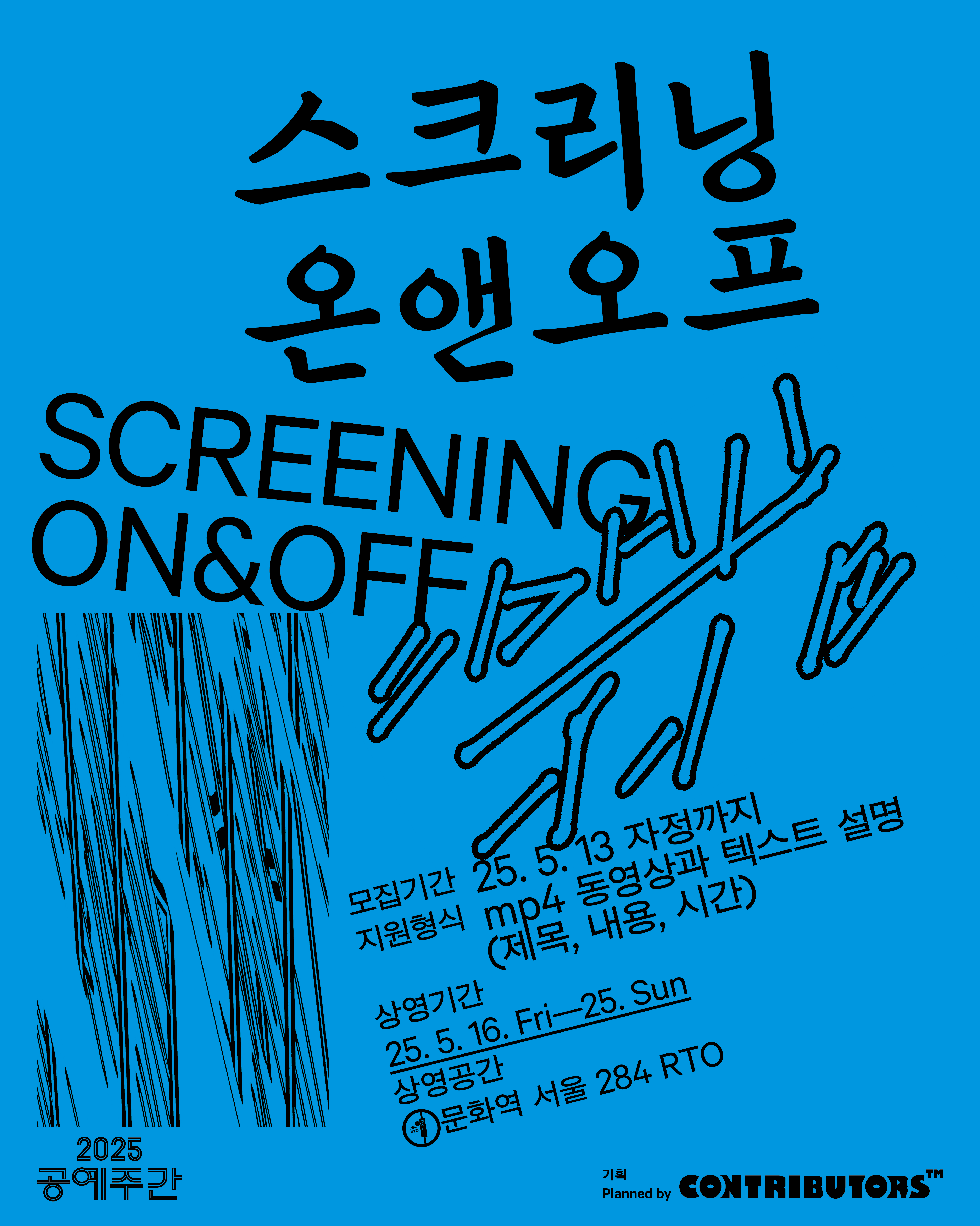 스크리닝 온앤오프는 전시 《미래공예》의 영상 아카이브 상영 프로그램입니다. 스크리닝 프로그램은 공예의 다층적 실천과 담론을 시각적으로 풀어내는 작은 극장이자 움직이는 아카이브입니다. 이 프로그램은 누구에게나 열려있습니다. 공예를 다루거나 공예로부터 출발한 모든 시청각 실험과 기록을 환영합니다. 전시 기간 동안 공예 실천의 다양한 면모를 보여주는 80개의 영상이 수집되어 전시 기간 내내 상영되었습니다.